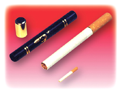 'Coges un cigarrillo lo introduces en un tubo, le pones la tapa... y cuando lo vayas a abrir el cigarrillo aparecerá en miniatura. Puede examinarse el tubo antes y después del efecto.'